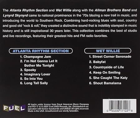 About atlanta rhythm section. 5 atlanta rhythm section. 05 so into you 06 long tall sally 以上アトランタ リズム セクション 07 street corner serenade 08 babyfat 09 countryside of life 10 keep on smiling 11 she caught the katy 12 shout banalama 以上ウェット ウィリー それぞれ30分ずつ 計1時間の録音です.