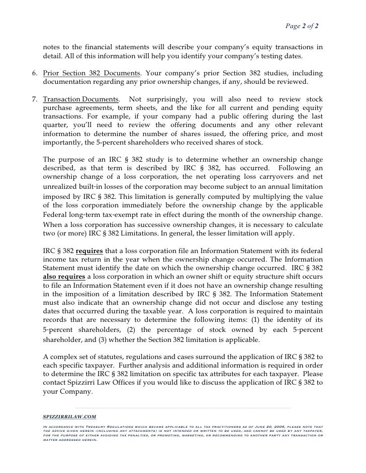 Irs code section 382. 94 455 shall not apply to any increase in percentage points occurring after december 31 1988 and. Under section 382 of the irc a c corporation is required to have a limit to offset historic losses. Although corporations are allowed to utilize pre change nols there is a limit to how much they can use to offset tax liability.