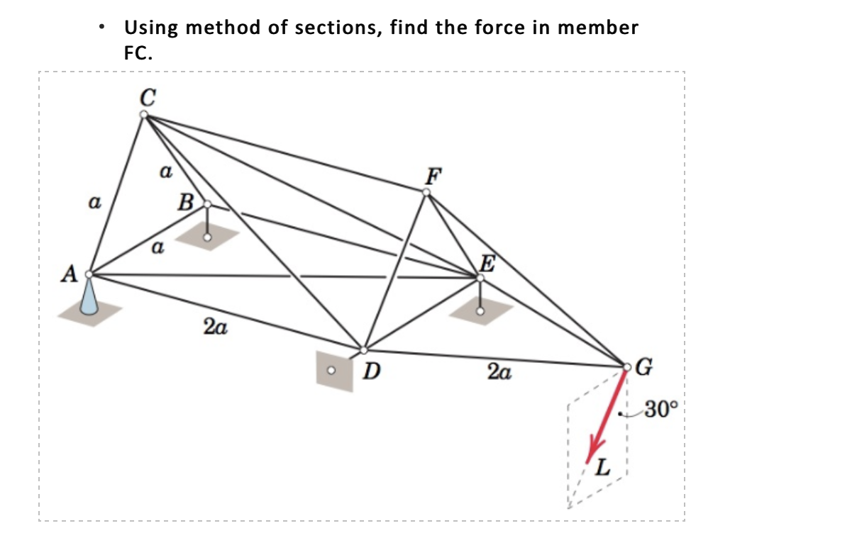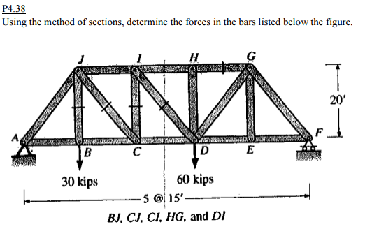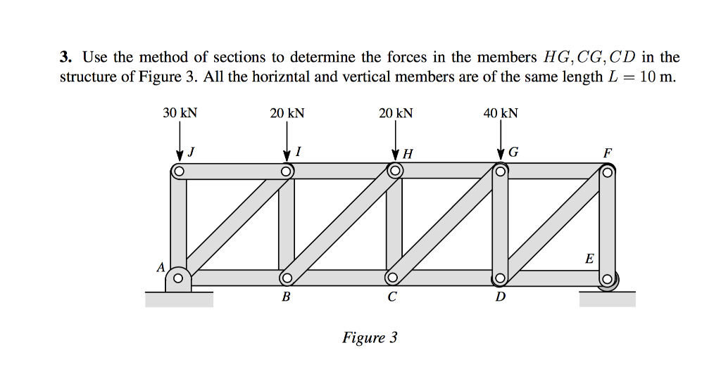 Get more help from chegg. The method of sections the method of sections we use an imaginary cut through members of the truss to expose the forces in those members as external forces. Figure 1 if the free body diagram of the joint on either side of the cut is known we can apply the equations of equilibrium to that part of the member to determine the forces at the cut.