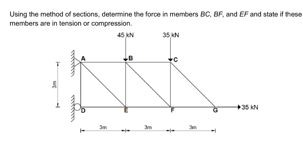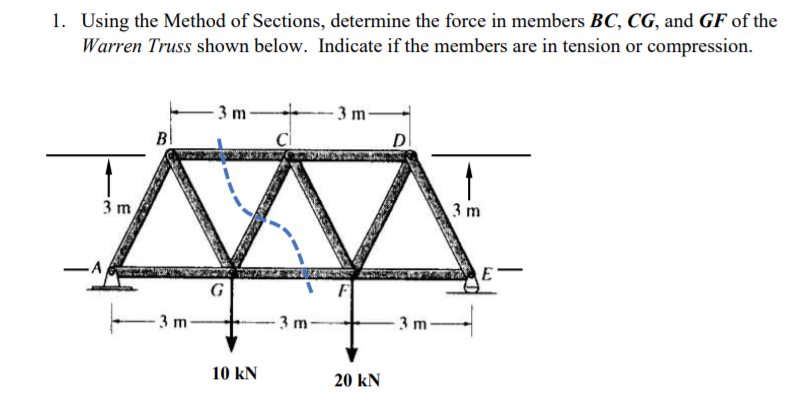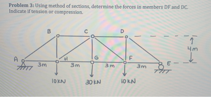 Truss analysis method of sections determine the force in members hg hc and bc of the truss and indicate whether they are in tension or compression. 7 kn 8kn 6kn. 50 kn 60 kn m 140 kn m 1.