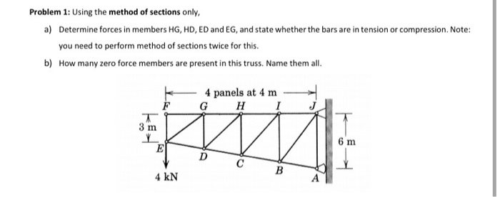As of march 2020 the company reported having 2 9 million subscribers to chegg services. Using the method of sections a b find the force in member hg ag and ab state whether each member is in tension or compression. 6 4 the method of sections in the method of sections a truss is divided into two parts by taking an imaginary cut shown here as a a through the truss.