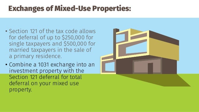The term which gets its name from irs code section 1031 is. The special exclusion granted by section 121 section 121 states that a personal residence can be exempt from capital gains tax through a 1031 exchange if an investor has both owned the property for at. Is it ok to get involved doing a 1031 exchange on your personal residence.