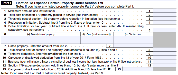 Form 4562 part i this part of the form is used to elect to expense tangible property off the shelf software and certain types of real estate e g a greenhouse placed in service in 2017 called. Line 12 cannot be more than line 11.
