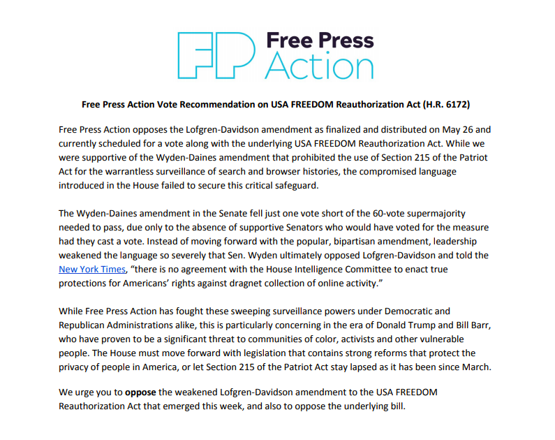 Section 215 of the patriot act section 215 of the usa patriot act allows the government to obtain a secret order from the foreign intelligence surveillance court fisc requiring third parties like telephone companies to hand over any records or other tangible thing if deemed relevant to an international terrorism counterespionage or. The fbi and nsa use section 215 to collect vast amounts of information about us persons without a warrant. Overview of section 215 of the usa patriot act usa freedom act download report pdf here.