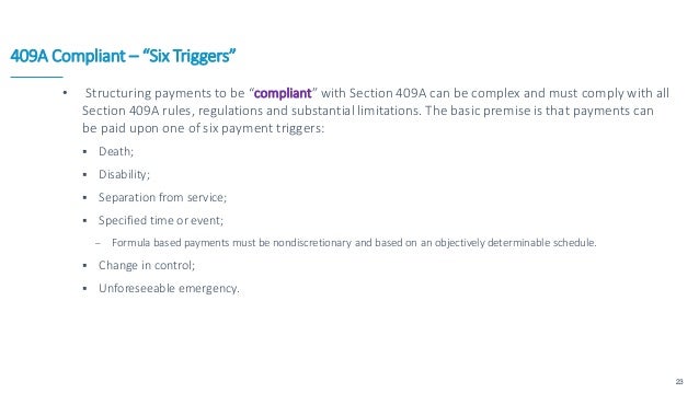 The requirements of section 409a a 2 a are met only if the plan provides that an amount of deferred compensation under the plan may be paid only upon an event or at a time set forth in this paragraph a. Notwithstanding section 885 d 1 of the american jobs creation act of 2004 pub. The proposed regulations state that the plan termination provision noted above is not ambiguous and that the section 409a final regulations currently require that all similar deferred compensation plans within.