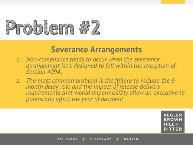 Severance agreements or separation pay plans are either subject to section 409a or are exempt from section 409a. Executive employment and severance pay under section 409a of the internal revenue code 05 22 07 effective generally january 1 2005 congress set off a sea change in the tax treatment of nonqualified deferred compensation arrangements with the adoption of new section 409a of the internal revenue code. For the same reason severance benefits that are negotiated.